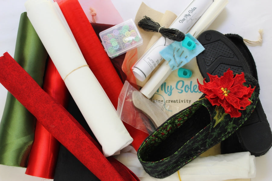 This is everything you need to complete 2 pairs of 3D Poinsettia Espadrille shoes.