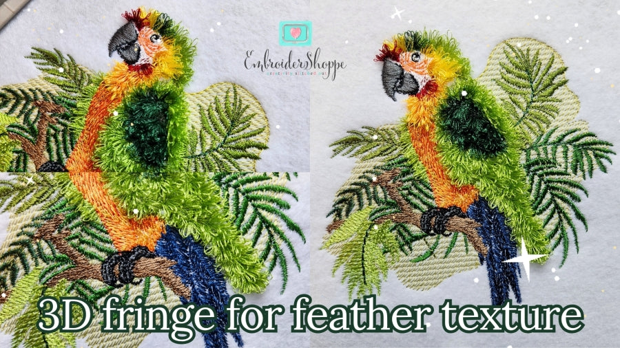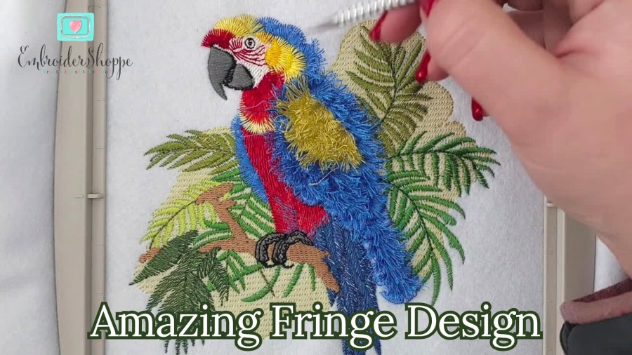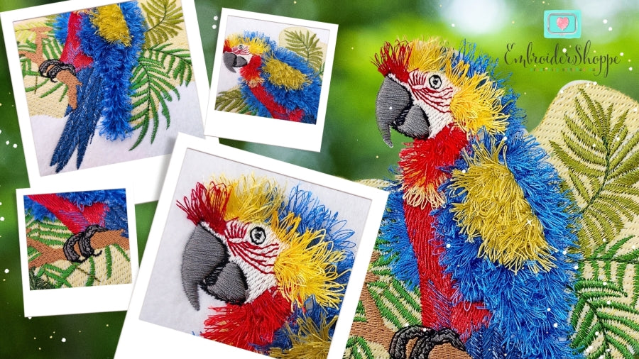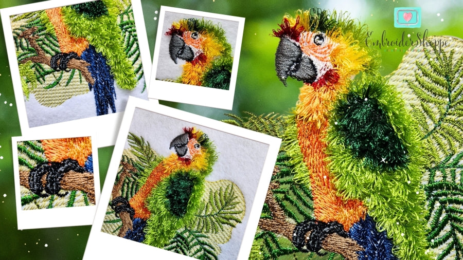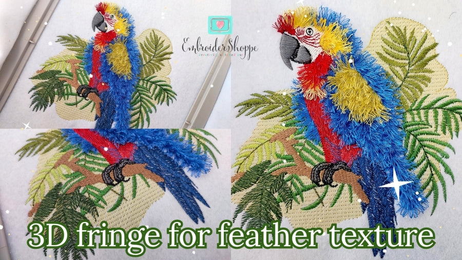 Pedro the Parrot – 4x6 Hoop Fringed 3D Embroidery Design 🧵🌴🦜