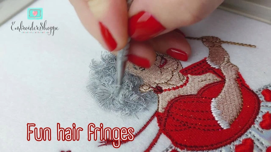 Designed for the 6x10 hoop, Ms. Lovely is delightfully dimensional, full of fluffy, frilly fun, and guaranteed to make your embroidery machine swoon. Whether you're stitching her up for a special Valentineās Day gift, a whimsical decor piece, or just because you need a little extra love in your lifeāsheās got you covered (literally, in fabulous thread).