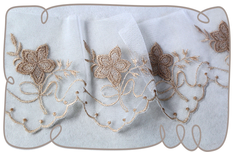To be able to embroider proper lace is usually paramount for every embroiderer. A beautiful lace design always evokes the perception of real embroidery. You will embroider the lace by following the instructions that you get with your pattern file. Every step is photo illustrated. You will need Tulle in an appropriate color and matching threads for the pattern. the pattern was designed to give you a basting stitch guideline block which makes it simple to align the next block with the previous one. Although the pattern is designed to embroider a continuous pattern each unit can also be used as free standing on whatever you want to embellish