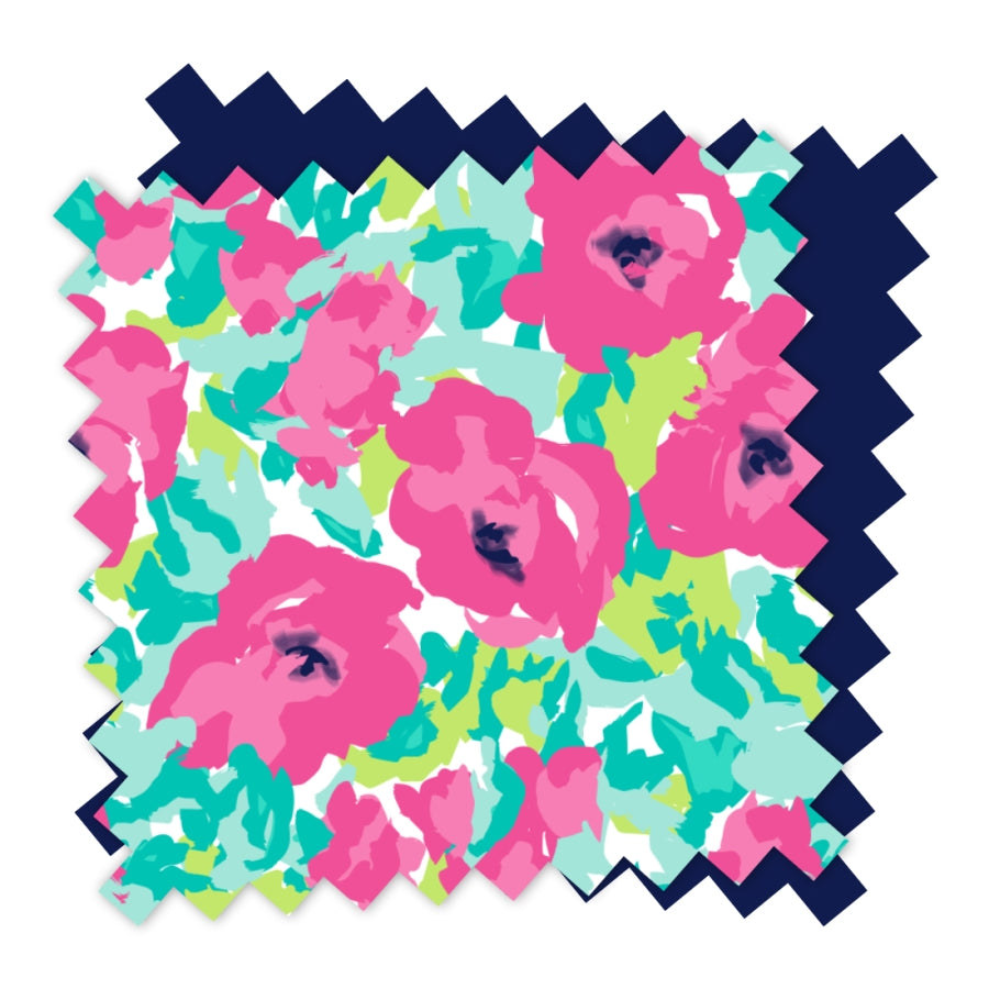 The Grace pattern was designed with bountiful floral gardens in mind. This classic floral print features a watercolor look comprised of bight pinks, mints, and green with a hint of navy.