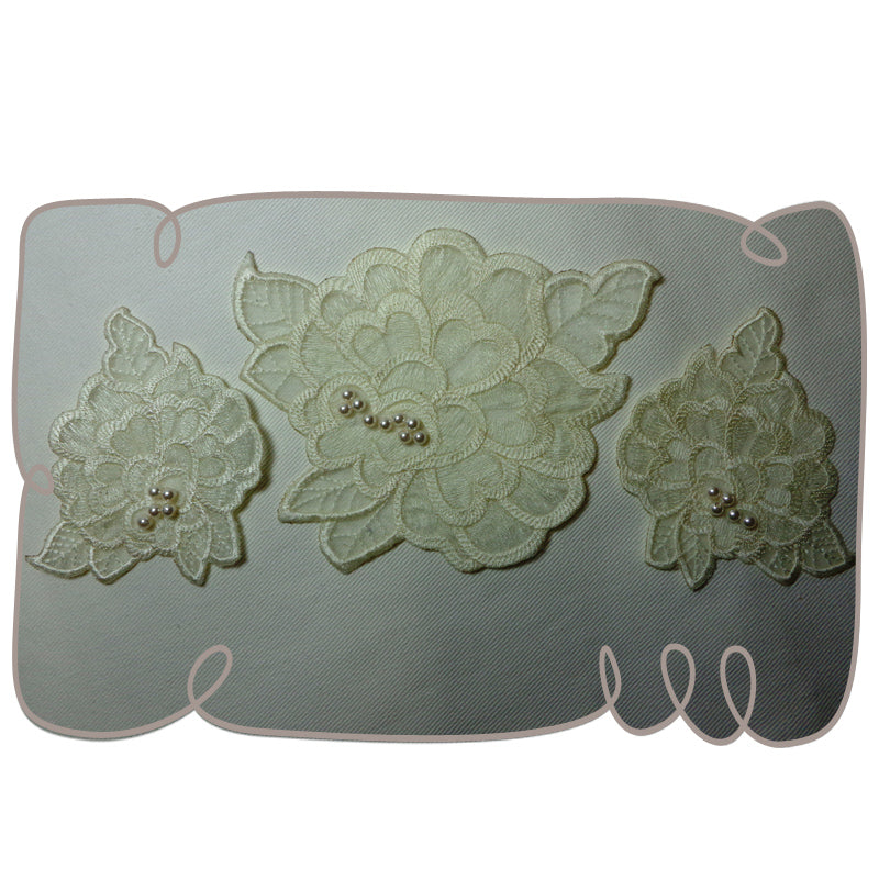 Embroider these versatile iron on lace flowers in three sizes and use them in combination to embellish pillow cases, garments etc... You will need water soluble stabilizer , threads, applique paper and steam-a seam or any fusible web. Embellish them with your favorite beads.