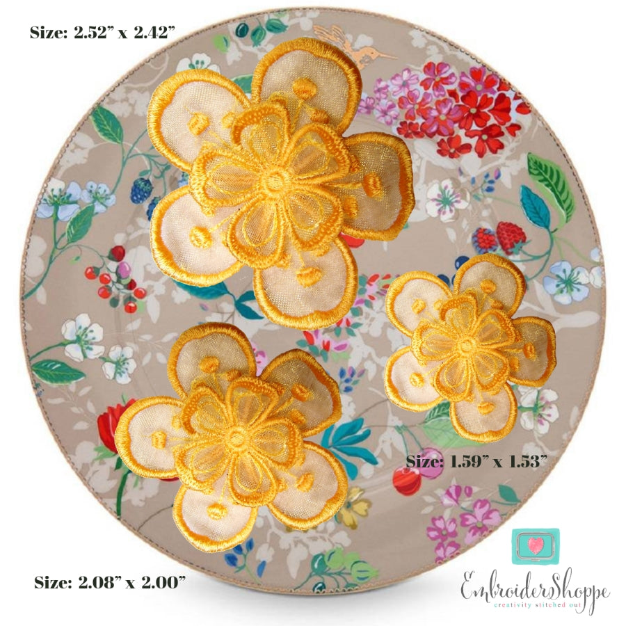 Create these floral embellishments from Organza and Water Soluble stabilizer.