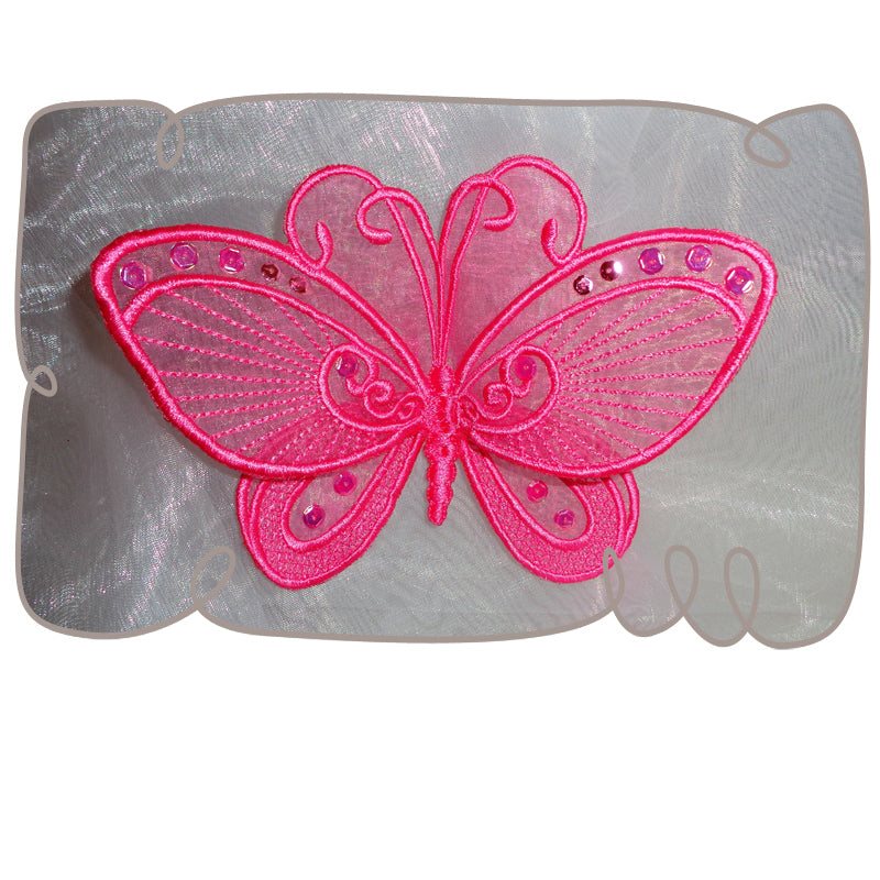 All you will need is organza, water soluble stabilizer, threads and rhinestones, beads or sequins to embellish your butterfly wings. Glue the butterfly onto a brooch pin and place it on a hat, tieback or curtains.